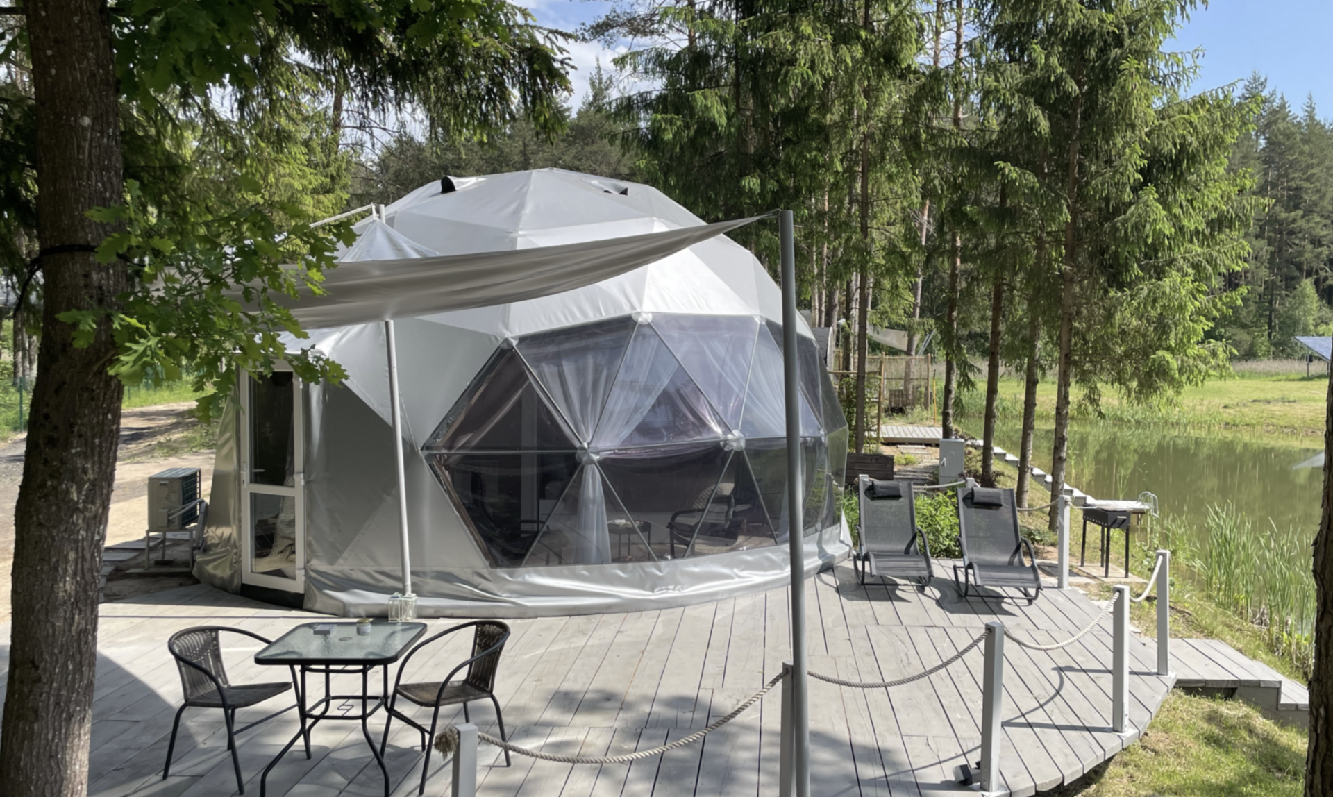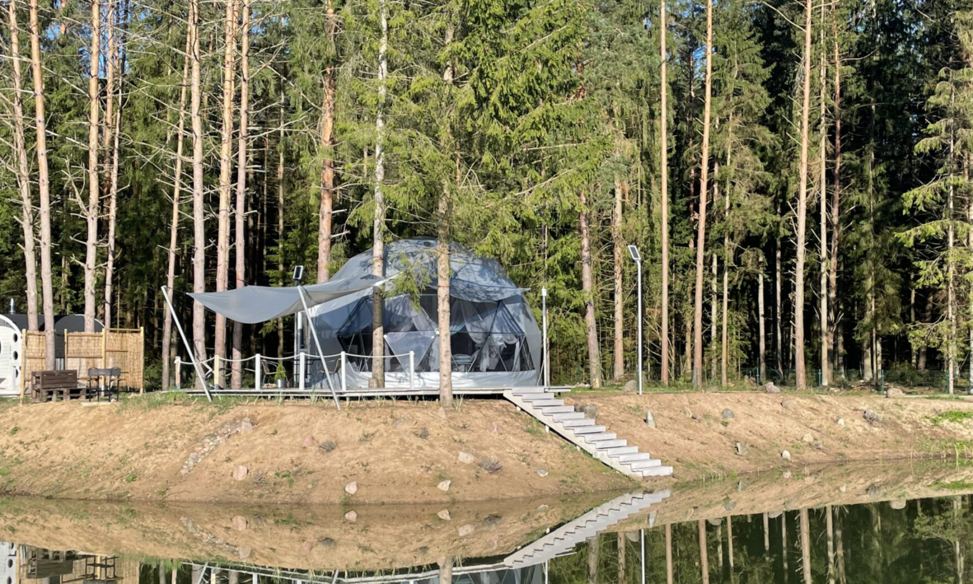 Pasvirės kaime ant tvenkinio kranto svečių laukia trys MOONGLAMPS kupolai. Ši vos 30 km nuo Vilniaus nutolusi poilsio vieta sukurta ieškantiems prabangaus ir komfortabilaus stovyklavimo. Visi trys kupolai įrengti su mažo namelio patogumais. Taip, čia yra ne tik WiFi, bet ir šildymas ir oro kondicionierius.