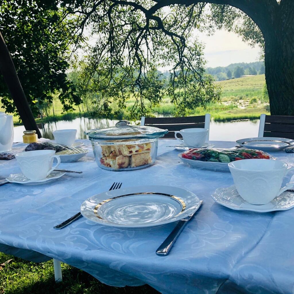 - virtuvėse visi įrankiai ir indai maisto gaminimui, o lauke – kepsninės su kepimo grotelėmis;