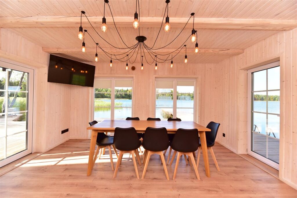Netoli Pramogų namelio taip pat yra ežeras, kuriame galima plaukioti valtimi ar irklentėmis – šios vandens pramogos įtrauktos į nakvynės kainą.