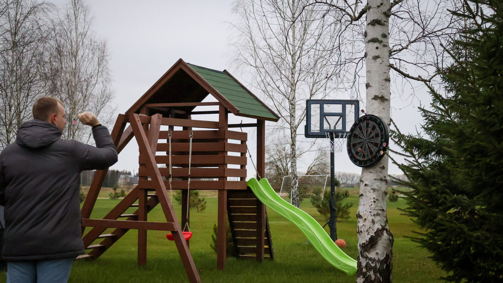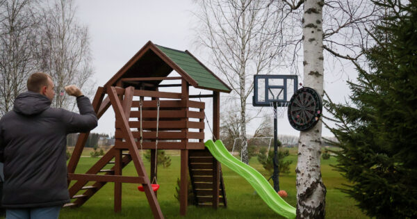 - vaikams skirtos erdvės: čiuožykla, sūpynės ir batutas.