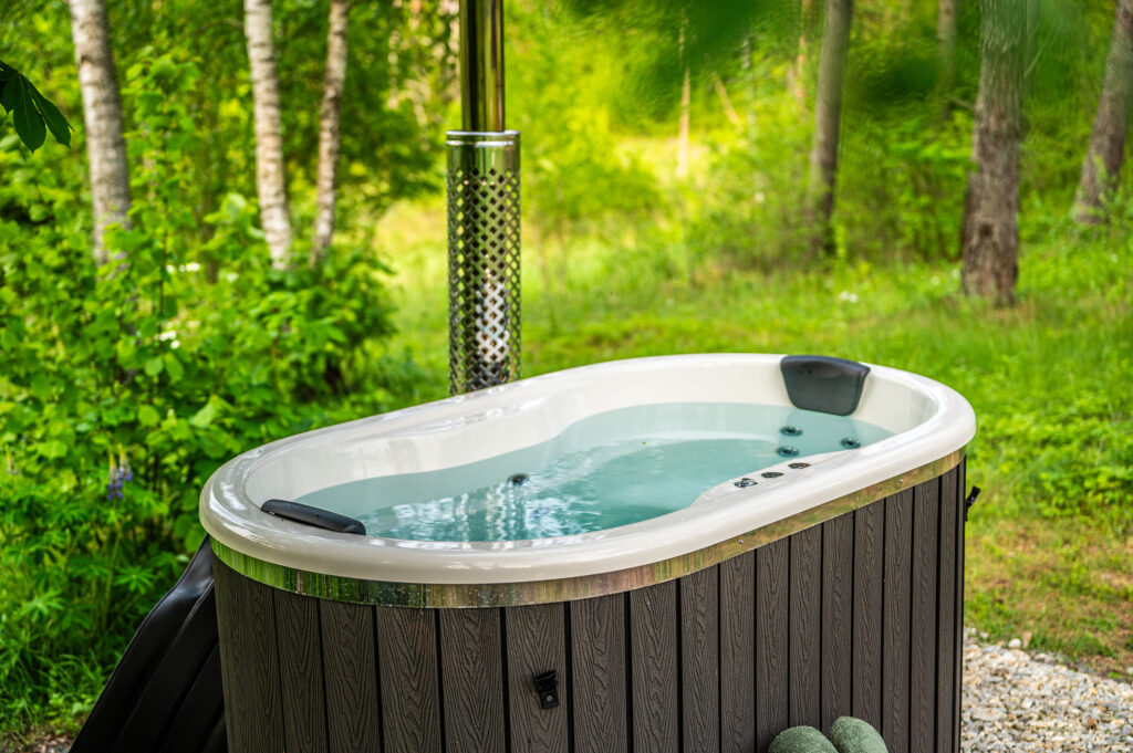 Šiame namelyje itin patiks tiems, kurie mėgsta maudynes vonioje. Viena įrengta vonios kambaryje, o kita – lauke. Na, iš tiesų lauke yra kubilas su masažo funkcija.