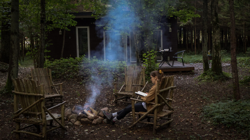Apsistoję namelyje, atsipalaiduoti galėsite jame įrengtoje pirtelėje. Šeimininkai gerbia jūsų privatumą, tad iš anksto paruošė malkas pirtelės iškūrenimui savarankiškai. Mėgautis gamta šeimininkai kviečia į namelio terasą arba susėsti aplink laužą specialiai įrengtoje laužavietėje. Miško ramybė, medžių šlamesys ir čiulbantys paukščiai – sutikite, tai tikra prabanga.