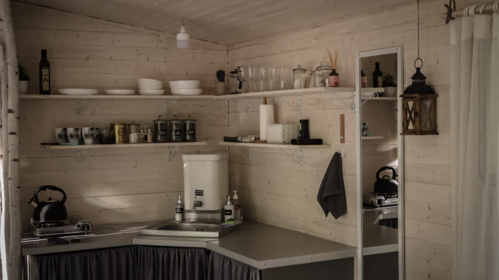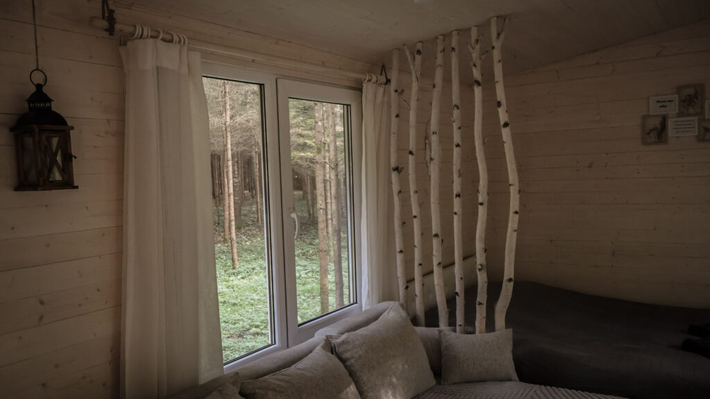 Miško sielos namelis – tai vadinamasis off-grid tipo namelis. Tai reiškia, kad jame nėra elektros, vandentiekio, WiFi ryšio ar kitų miestietiškų patogumų. Vieniems tai sunkiai įsivaizduojamas konceptas, kiti – džiaugiasi galėję pabėgti nuo patogumų, pasinerti į kasdieninius paprastus darbus ar prisiminti vaikystėje ar jaunystėje praleistą laiką kaime (tik čia kur kas moderniau). Nesijaudinkite, apie šiuos patogumus šeimininkai tikrai nepamiršo. Nors namelis yra nedidelis, tačiau vos 20 kv.m. erdvėje jaukiai telpa dvigulė lova bei virtuvėlė. Joje paruošti indai bei įrankiai gaminimui, o vanduo teka iš specialaus indo su kraneliu. Taip pat vanduo yra paruoštas ir pirties erdvėje, į kurią išeisite tiesiai iš namelio. Naudodamiesi pirtele, tuo pačiu pašildote ir vandenį, tad indų plovimui ar prausimuisi beliks sumaišyti karštą vandenį su šaltu. Gaminimui lauke taip pat paruošta ir kepsninė bei grotelės, tereikia turėti savo malkų ar anglių. Vonios kambario namelyje nėra, tačiau tvarkingas bio tualetas yra lauke, taip pat viduje yra ir nedidelis naktinis biotualetas. Tikriausiai, kyla klausimų dėl elektros ir apšvietimo. Šeimininkai supranta, kad gali tekti įkrauti mobiliuosius telefonus, jų įkrovimui rasite galingą bateriją. Namelio apšvietimui naudojami įkraunami šviestuvai. Namelis šildomas viduje esančiu židinuku-krosnele, malkos šildymui yra paruoštos.