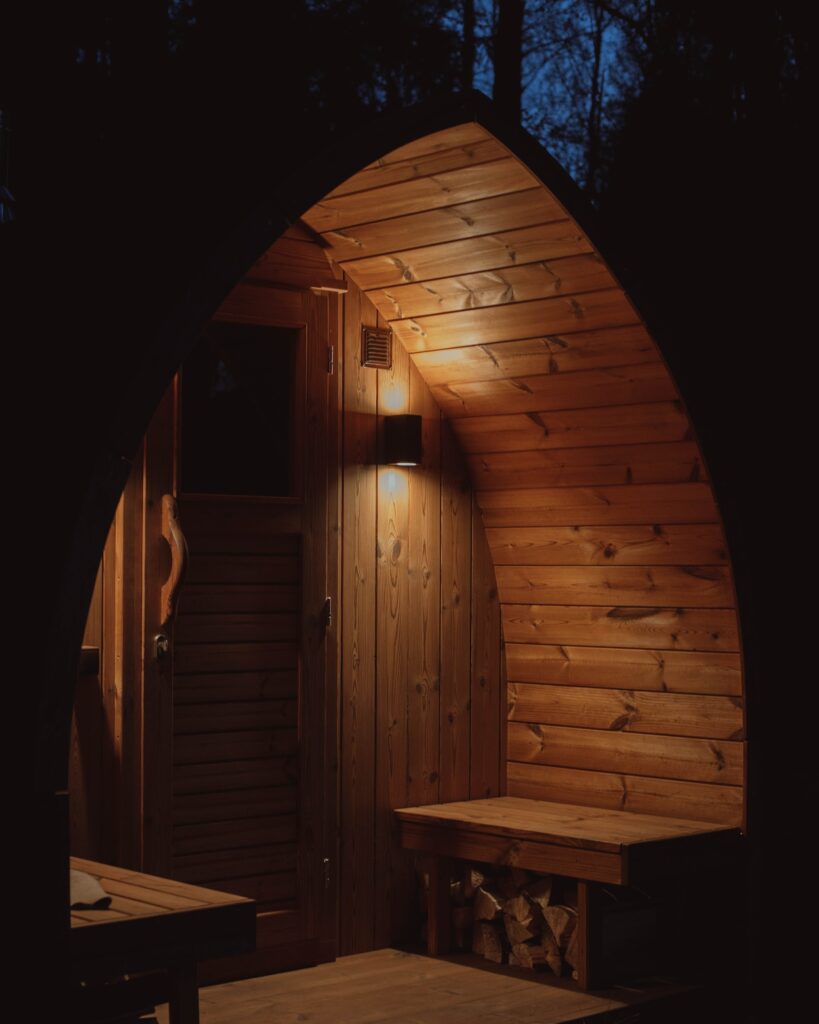 Namelis po egle yra ta vieta, kurioje galite mėtautis savo privačiu mini SPA miško apsuptyje. Už papildomą mokestį nuomojamas kubilas bei pirtis. Šalia namelio įrengti ir du gultai, kuriuose jaukiai įsitaisę, galėsite klausytis miško garsų, skaičiuoti žvaigždes danguje ir mėgautis ramiu lėtu poilsiu. Jei norėsis laiką leisti namelyje, viduje rasite stalo žaidimų.