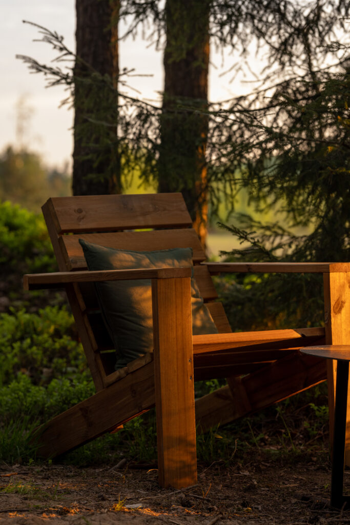 Tam, kad ilsėtųsi protas, namelis įkurtas su visais reikiamais patogumais jūsų komfortiškam poilsiui, tad jaudintis dėl įvairiausių buties smulkmenų nereikės. Namelis po egle komfortiškam ir jaukiam poilsiui pritaikytas visus metus – žiemą veikia šildymas, o vasarą kondicionierius. Jo viduje įrengta patogi dvigulė lova su vaizdu į mišką pro vitrininius langus ramiam miegui, taip pat galima pristatyti ir viengulį čiužinį, jei nuspręsite atvykti su vienu vaiku. Svetainėje yra mini virtuvėlė, joje reikiami indai bei įrankiai gaminimui, taip pat kava ir arbata. Tikriems gamtos mėgėjams paruošta kepsninė, kepino grotelės bei malkos, kad galėtumėte mėgautis gaminimu gamtoje. Namelyje įrengtas ir vonios kambarys, kuriame rasite chalatus ir higienos reikmenis.