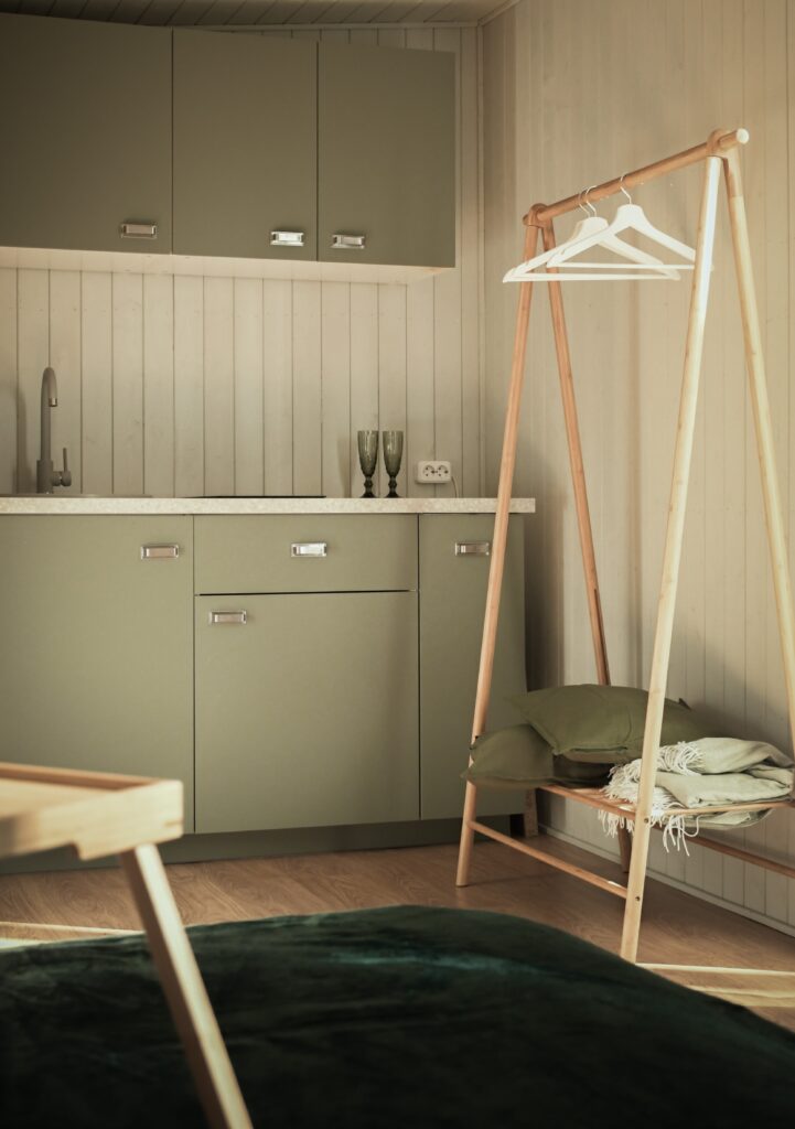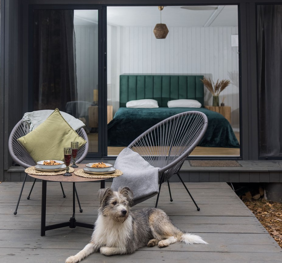Namelis po pušim – ideali vieta lėtam poilsiui. Neskubėdami mėgaukitės kavos puodeliu terasoje arba patogiai įsitaisykite ant gultų šalia namelio ir žiūrėkite į dangų pro pušų kamienus. Žaiskite stalo žaidimus, jaukiai įsikūrę namelyje arba šalia jo, o vakare pasakokite istorijas prie laužo. O kai norėsite dar didesnio atsipalaidavimo, kubilas bus puikus pasirinkimas.