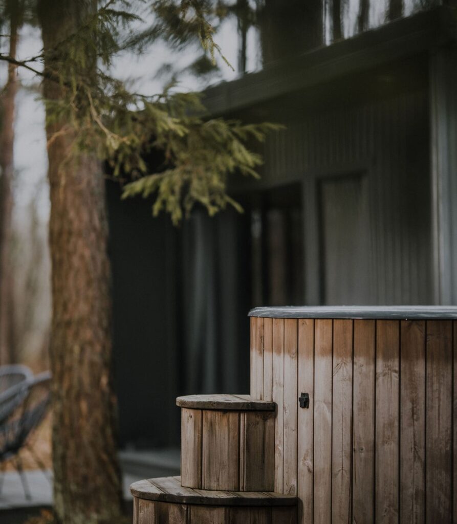 Vos už kelių žingsnių nuo Namelio po pušimi įrengtas kubilas, kurį galima užsisakyti už papildomą mokestį.
