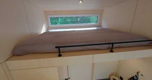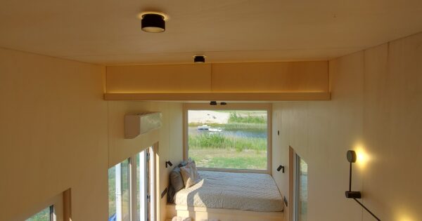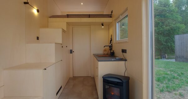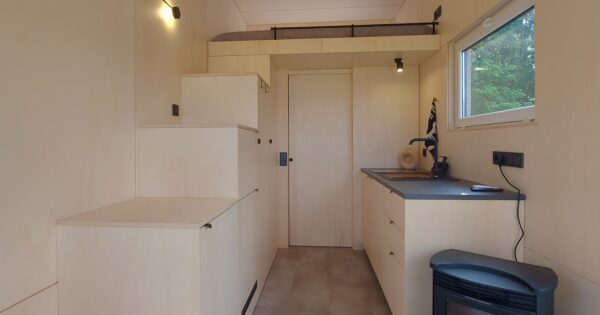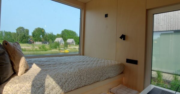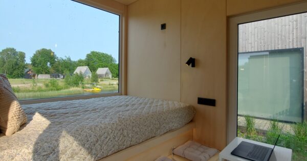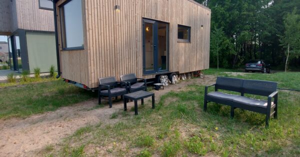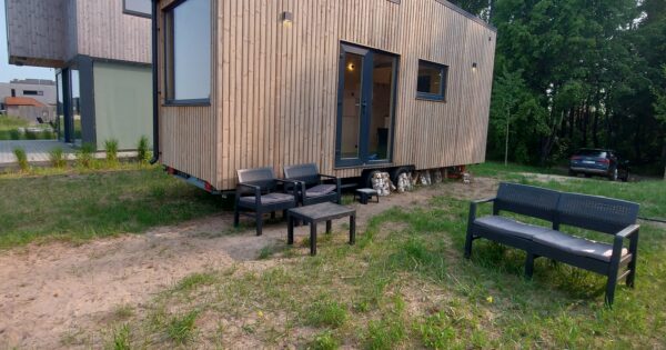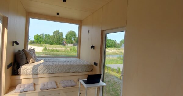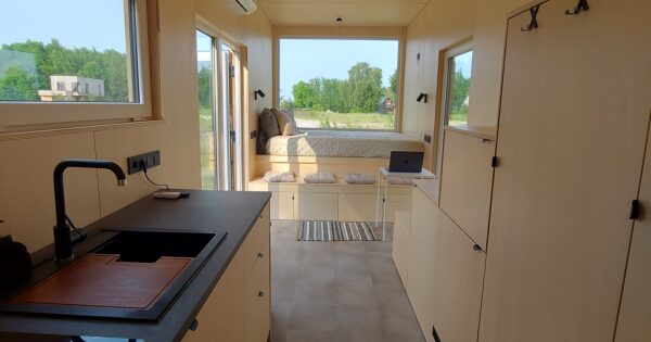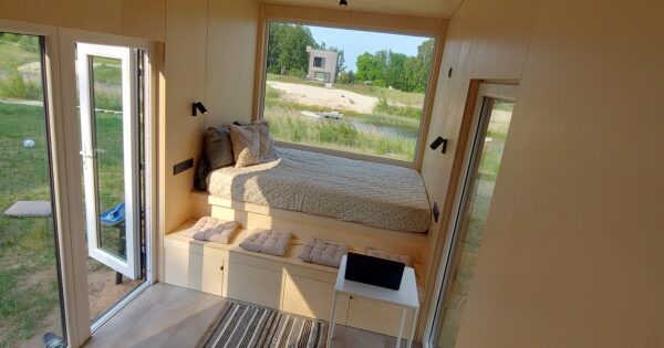 Jaukus "tiny living" stiliaus namelis ant ratų, įsikūręs unikalioje kaituotojų pamėgtoje vietoje - Svencelėje.