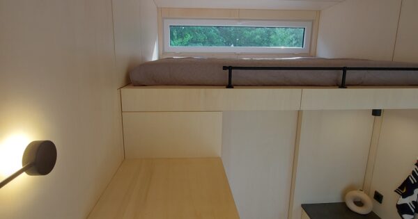 Jaukus "tiny living" stiliaus namelis ant ratų, įsikūręs unikalioje kaituotojų pamėgtoje vietoje - Svencelėje.