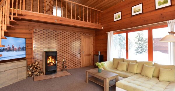 Rąstinis namelis dviems įrengtas taip, kad jame būtų gera ilsėtis tiek vasarą, tiek žiemą. Pirmajame aukšte jūsų laukia svetainė su sofa, kur vakarus galima leisti prie spragsinčios krosnelės-židinuko, žiūrint mėgstamą filmą ar tiesiog garsiai svajojant žvelgiant pro vitrininius langus. Antrajame aukšte įrengta patogi dvigulė lova ramiam miegui ir lėtiems rytams. Vonios kambaryje rasite sūkurinę vonią, rankšluosčius ir higienos reikmenis. Namelyje nėra virtuvės – tai sąmoningas sprendimas, leidžiantis visiškai pailsėti nuo buities ir kasdienybės. Jei prireiktų indų ar taurių, juos nemokamai suteiks restoranas, o norintiems gaminti lauke, už papildomą mokestį galima išsinuomoti šašlykinę su malkomis, iešmais, grotelėmis ir visais reikalingais indais.