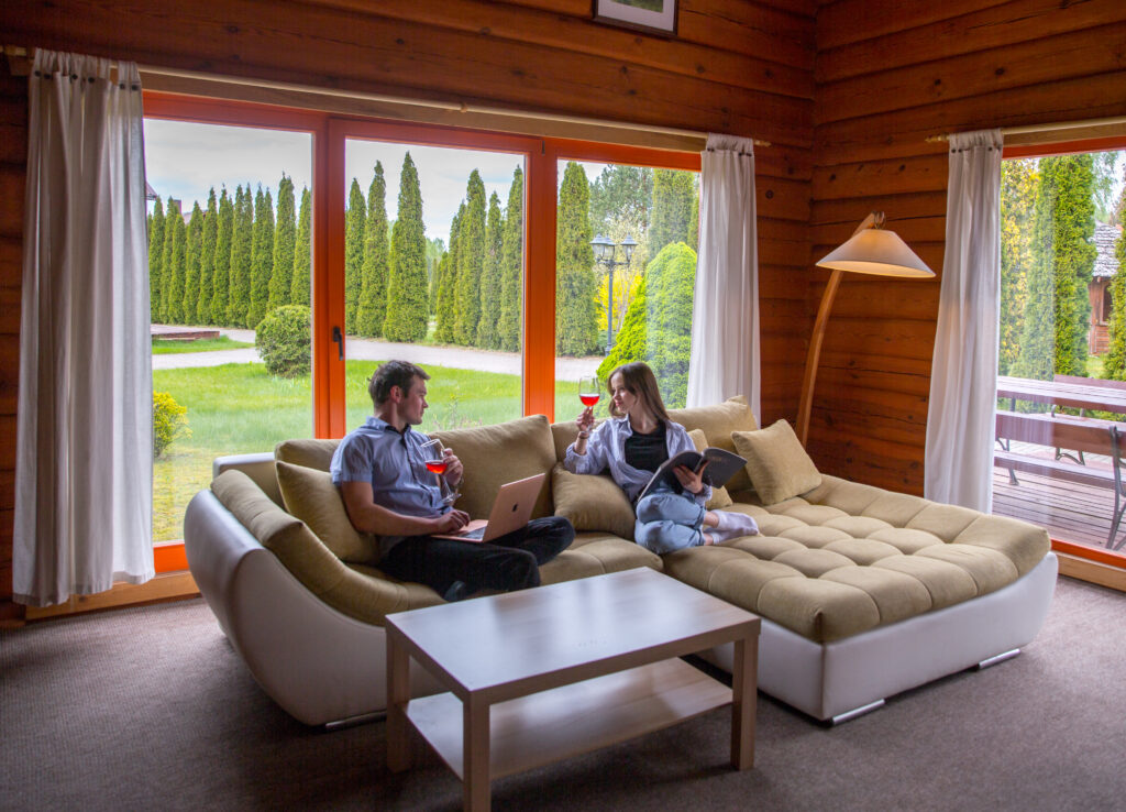 Rąstinis namelis su sūkurine vonia Aerodream – tai dar vienas dvivietis namelis, norintiems pabėgti nuo kasdienės rutinos, sulėtinti tempą ir pasimėgauti laiku dviese ar su vienu mažu vaiku. Įsikūręs Aerodream sodybos teritorijoje Trakų rajone, namelis dviems sukurtas galvojant apie privatumą, ramų poilsį ir paprastą buvimą kartu. Čia net net ir kasdienis klausimas „ką šiandien gaminti?“ lieka už durų, nes sodyboje veikia restoranas, kuriame galite užsisakyti pusryčius, pietus ir vakarienę. Ypatingą jaukumo ir atsipalaidavimo jausmą sukuria vonios kambarys, kuriame vietoje įprastos vonios įrengta sūkurinė – atsipalaidavimas visais metų laikais garantuotas.