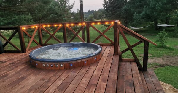 Privatus kupolas su kubilu dviems jaukiam laikui gamtos apsuptyje.